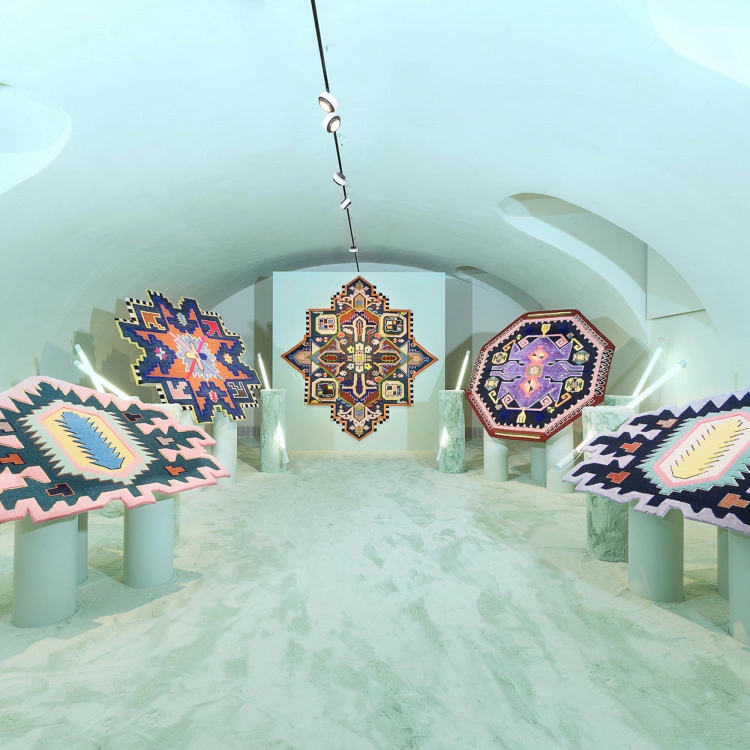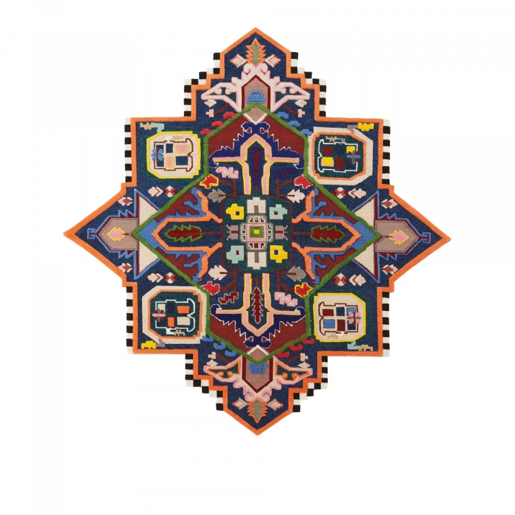 Tabriz Destroyer Rug är formgiven av Rug Invaders för italienska cc-tapis. De har tillsammans skapat en iögonfallande matta med ett inter-galaktiskt mönster där mattan tillåts vara fokuspunkten i ett rum. Tabriz Destroyer Rug är tillverkad för hand i en blandning av ull, bomull och silke och kommer i storleken 220 x 230 cm. Med inspiration från traditionella mattmotiv och ikoner har Rug Invaders brutit sig loss från sitt historiska förflutna och skapat en ny generation mattor, avsedda att erövra och omdefiniera hur mattor används i ett utrymme.