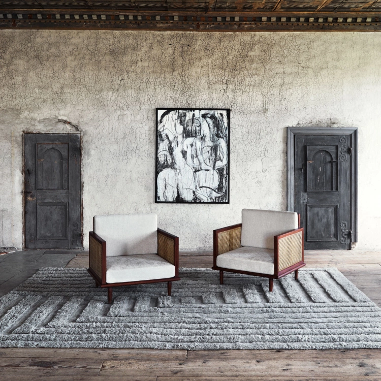 DD Shaggy Labyrinth Rug Grey är en matta ur Dusty Decos första kollektion. Den omfattande kollektionen består förutom av mattor i olika utföranden även av sittmöbler, bord och speglar.