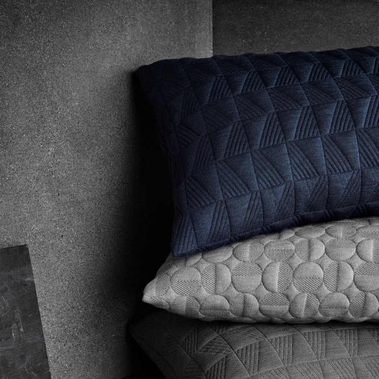 I kollektionen Objects från Fritz Hansen ingår denna kudde designad av Arne Jacobsen. Gemensamt för kuddarna är att dom är stickade istället för vävda vilket ger kuddfodralet en unik struktur. För att kunderna ska behålla sin passform över tid så har man fyllt kuddarna med Fossflake som är en mjuk stoppning som inte klumpar sig. Den här rektangulära kudde i färgen Midnight Blue passar utmärkt ihop med Fritz Hansens soffor eller loungefåtöljer, exempelvis Ro.