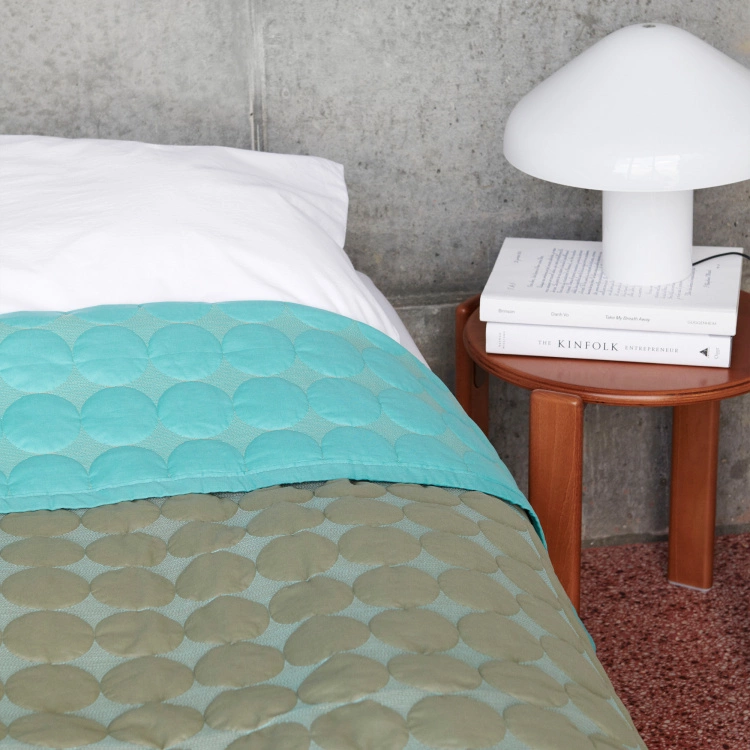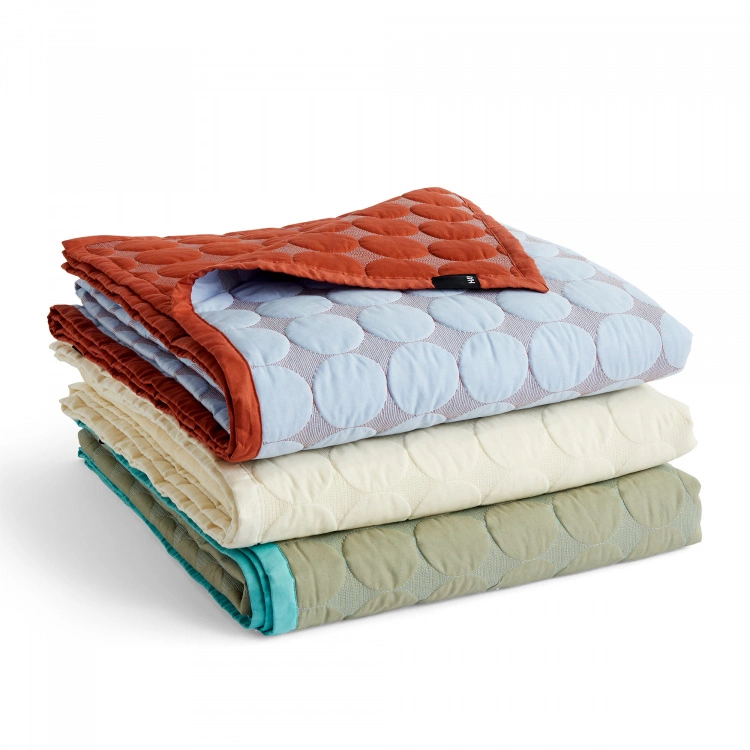 Mega Dot Olive Green är formgiven av det danska varumärket HAY. Det är ett överkast tillverkat i mjuk bomull och fyllt med ett tunt lager av polyester för extra komfort. Kollektionen Mega Dot har får sitt namn från det cirkulära mönstret som är quiltat på överkastets framsida och baksida. Mönstret går i linje med HAYs typiska formgivning då det förenar modern design med stilren lekfullhet. Detta överkast kommer i färgen Olive Green men finns även i flera andra sofistikerade färger att köpa hos oss på Nordiska Galleriet.