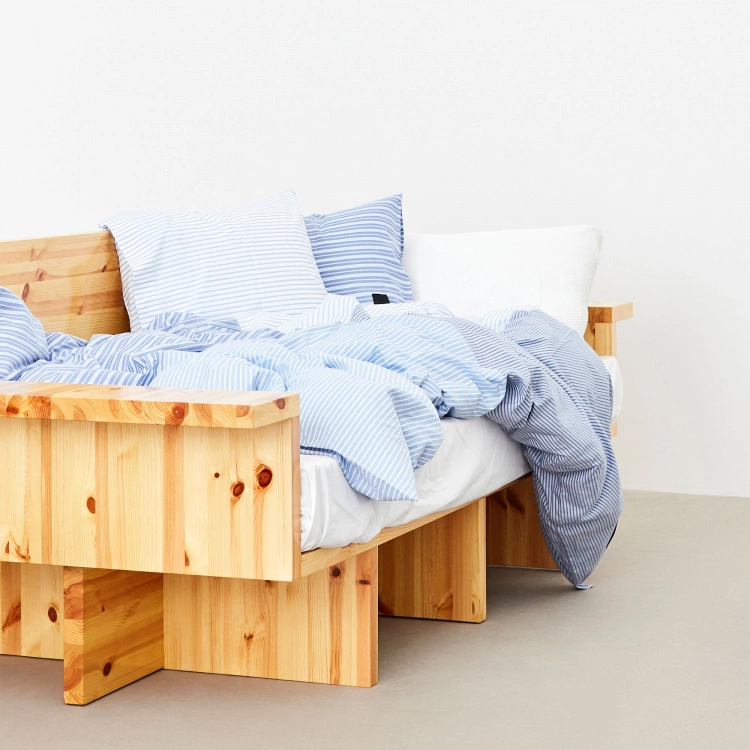 Påslakanet Wall Street Duvet Cover Oxford 4/4 Patchwork kommer från det svenska bäddtextilvarumärket Magniberg. Designen påminner om ett lapptäcke med fyra olika randiga oxfordtyger, sammanfogade till ett. Den randiga kollektionen Wall Street är inspirerad av de djärva skjortorna som syntes på 1980-talets bankgolv. Varumärket vill sätta det formella, idag ikoniska klädesplagget i ett nytt sammanhang för att göra det mjukt och sensuellt.