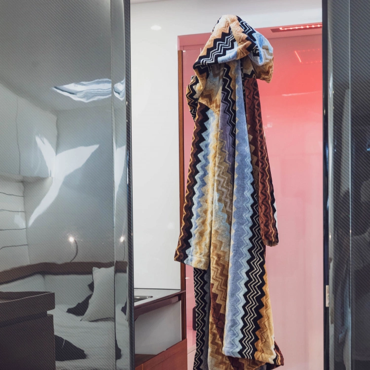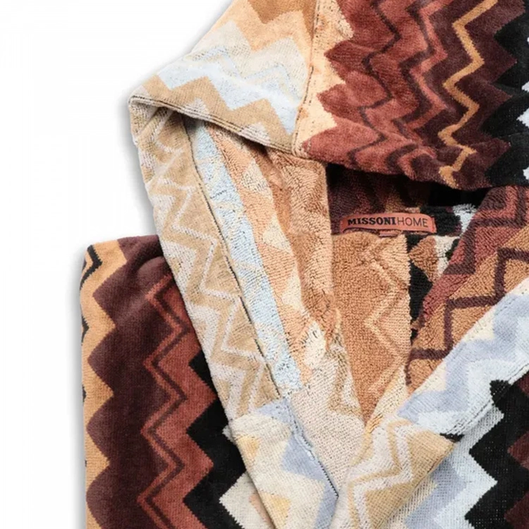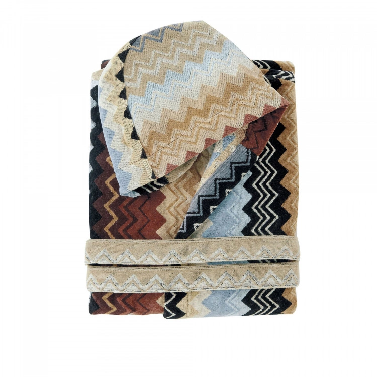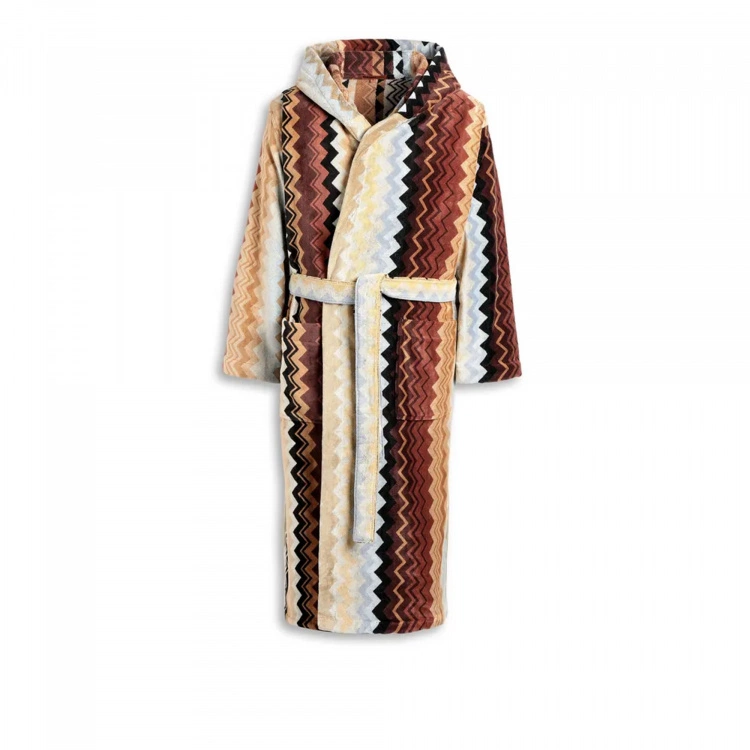 Giacomo Badrock 160 från varumärket Missoni Home är en skön badrock av unisex-variant som består av bomullsfrotté med en utsida av velour. Giacomo Badrock 160 har en mysig luva som skyddar ditt blöta hår och hjälper dig att hålla värmen. Badrocken har Missonis klassiska zig-zag mönster i härliga nyanser. Giacomo Badrock 160 piggar definitivt upp tillvaron hemma, samtidigt som den är skön och lyxig. Badrocken finns även i färgerna 165, 170 och T59, alla med samma mönster men med andra nyanser. Badrocken är normal i storleken. Giacomo är en serie bestående av badrockar, badrumsmattor samt ett flertal handdukar.