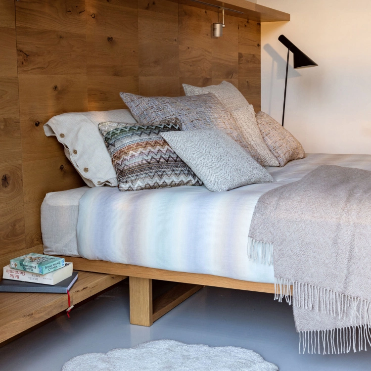 Yoda Pläd 21 är en vacker, exklusiv pläd från italienska Missoni Home. Denna pläd är tillverkad i ull och viskos och kommer i tre olika färger; två jordnära toner och en lekfull blå färg. Yoda Pläd 21 är en snygg och tidlös detalj att pryda soffan eller fotändan av sängen med. Dess klassiska design med fransad kant gör att den håller stilen år efter år. Yoda Pläd 21 är utmärkt som en värmande accessoar och som gåva att ge bort. I Missonis Homes sortiment hos Nordiska Galleriet finns ett urval av olika plädar att välja på.