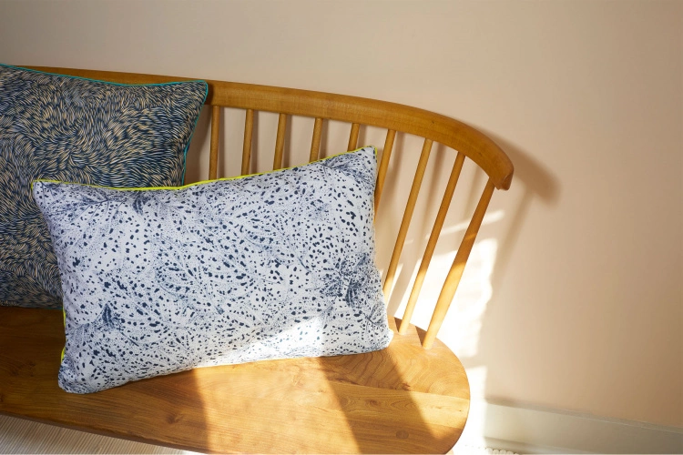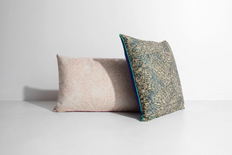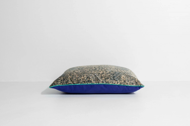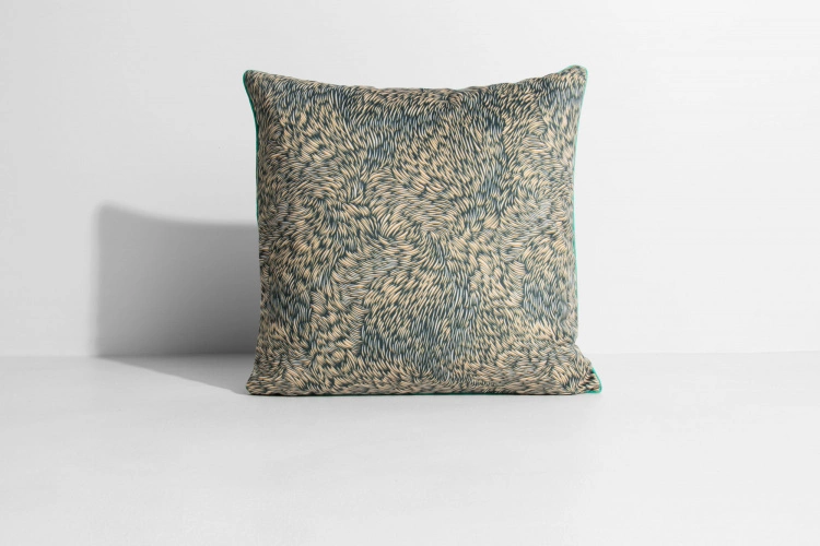 Mönstret på Volutes Square Cushion och dess virvlande penseldrag för tankarna till Van Goghs vetefält och Max Liebermanns ängar. I serien Volutes finns även en rektangulär kudde i en annan färgställning. Kombinera gärna med andra kuddar från Petite Friture formgivna av Tiphaine De Bodman.