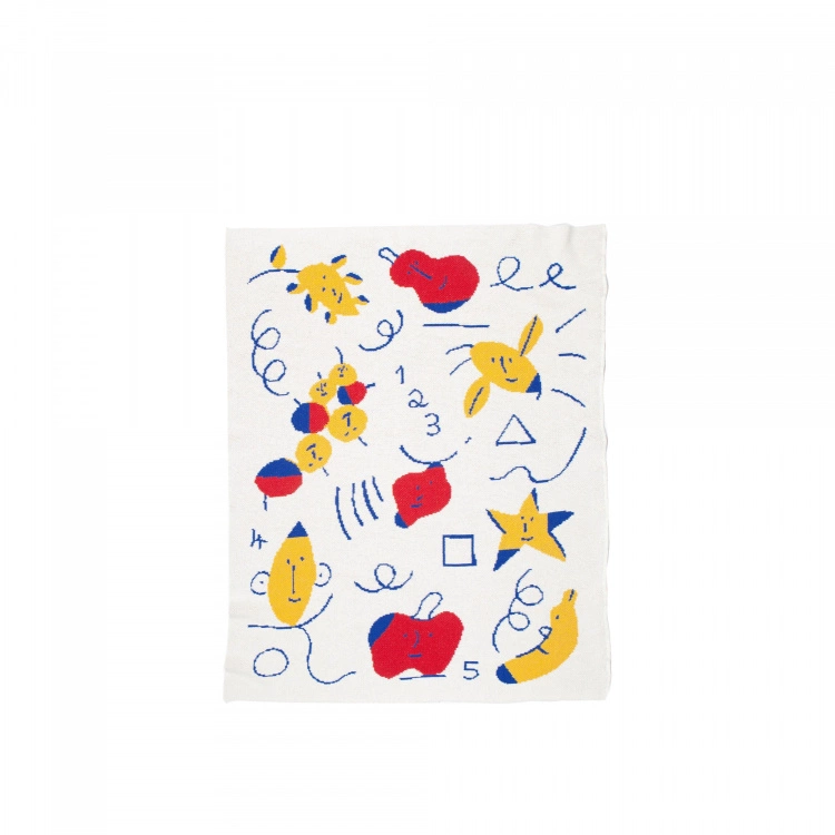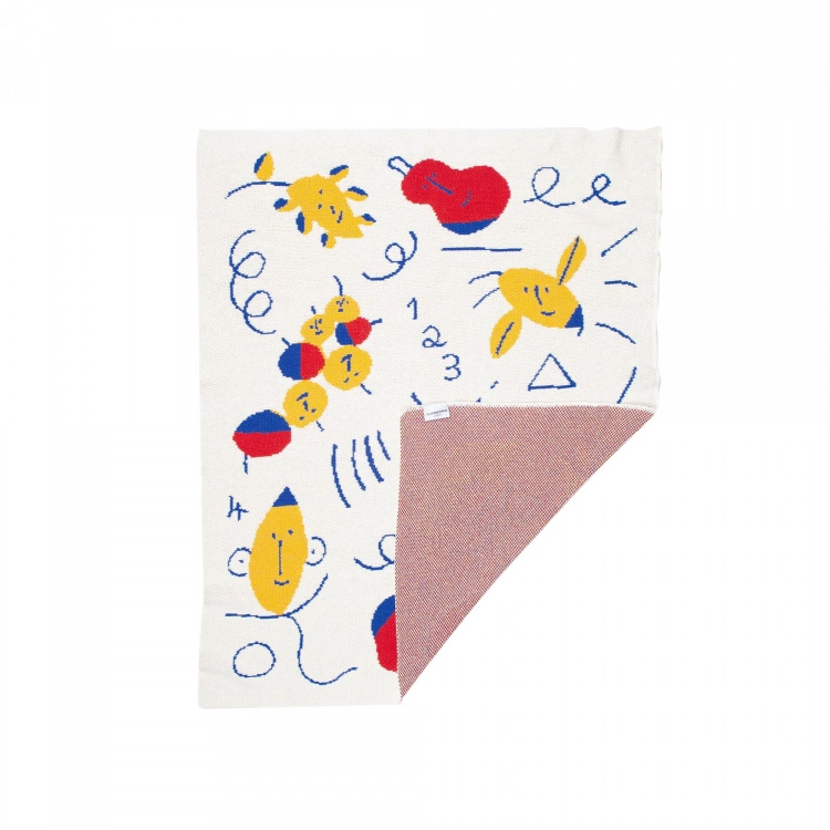 123 Mini Blanket är en härlig filt designad av den Londonbaserade illustratören Bo Matteini för Slowdown studio. Filten har en mindre storlek på 76 x 102 cm och ett lekfullt motiv med figurer och fartfyllda streck. Därmed passar den utmärkt att använda som babyfilt. Färgerna går i rött, gult och blått mot en vit bakgrund. 123 Mini Blanket ligger perfekt i spjälsängen och blir en vacker inredningsdetalj i barnrummet. Filten är gjord av 80 % bomull och 20 % polyetserblandning vilket gör den mjuk samtidigt som den inte blir nopprig, så du kan använda den i många år framöver.