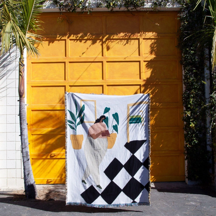 Dresden Throw är en pläd från det amerikanska varumärket Slowdown Studio. Pläden är designad av den Dallasbaserade illustratören Niki Dionne, som förknippas med sina oljepasteller och fiberkonst. På denna pläd porträtteras en person iklädd kläder i jordnära toner. Bakgrunden föreställer bland annat ett svartvit-rutigt golv och vita väggar samt gula och gröna detaljer. Pläden går utmärkt att använda i soffan, som picknickfilt eller att hänga på väggen som ett konstverk. Dresden Throw är 137 x 178 cm stor och är tillverkad i 100% bomull varav 25% av garnet är återvunnet.