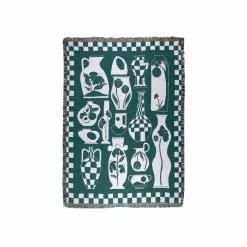 Duffy Throw är en pläd från det amerikanska varumärket Slowdown Studio. Pläden designades av den Londonbaserade illustratören Niamh Power och var en av tolv vinnare på Slowdown Art Comp år 2021. På plädens ena sida illustreras vita vaser och kannor i varierade former mot en grön bakgrund och på andra är liknande illustrationer fast i lilarosa toner. Pläden har ett konstnärligt intryck och är lika vacker upphängd på väggen som inredningsdetalj i soffan. Duffy Throw är 137 x 178 cm stor och är tillverkad i 100% bomull varav 25% av garnet är återvunnet.