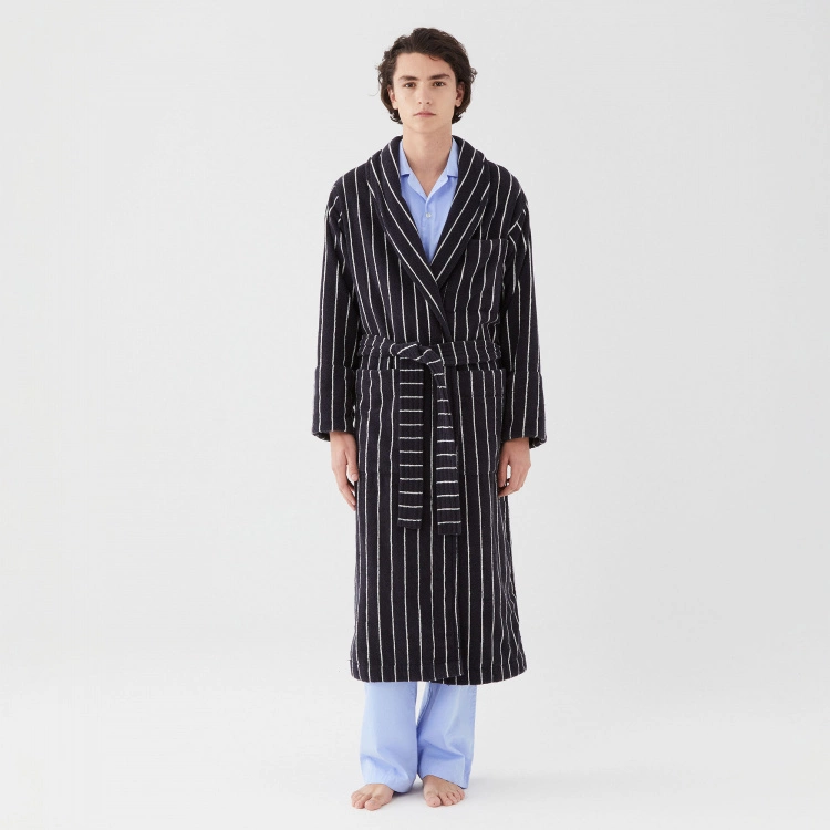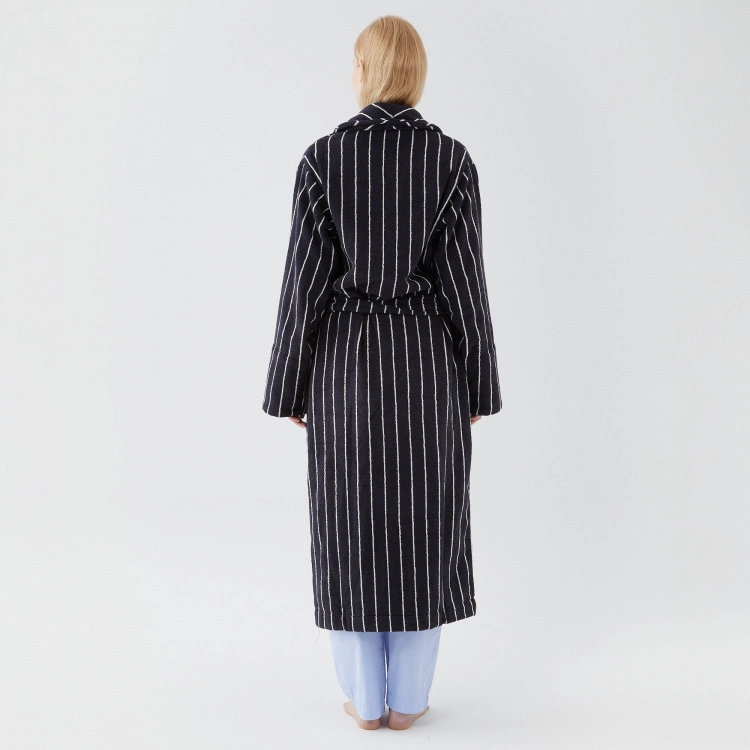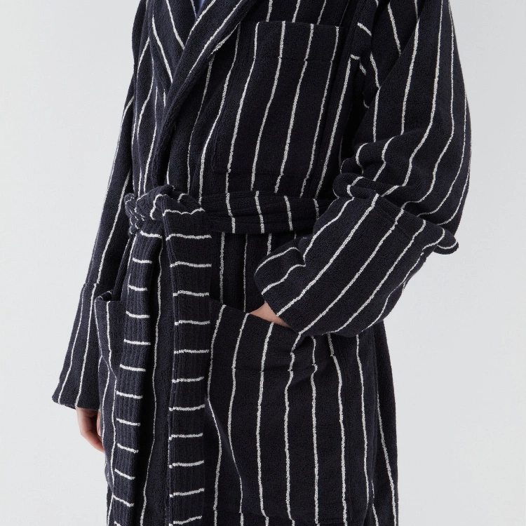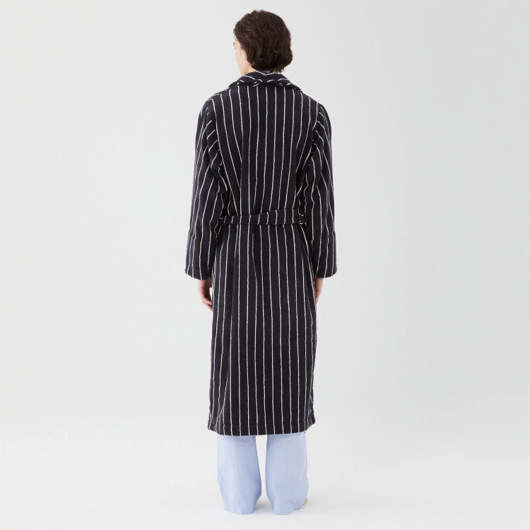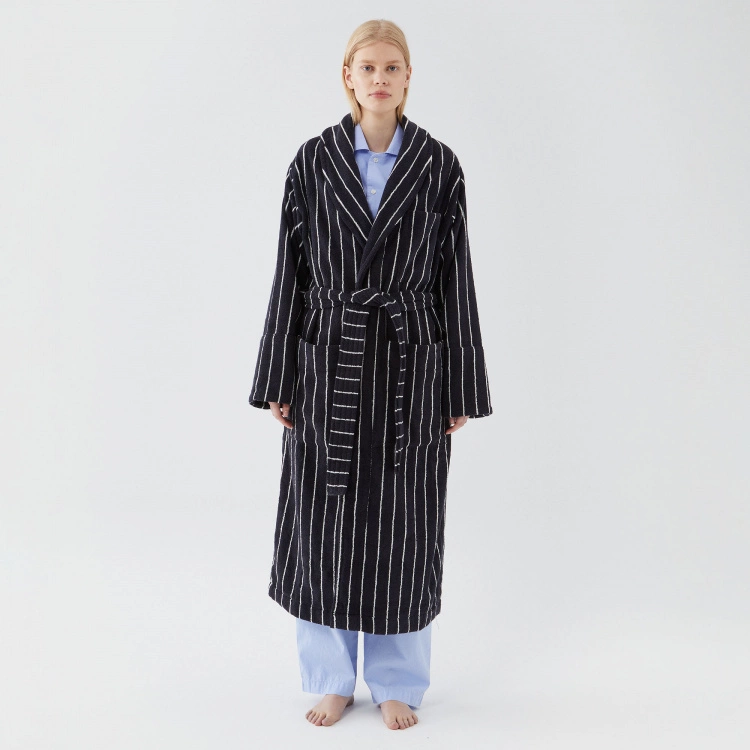 Badrocken Classic Bathrobe Antwerp kommer från danska bäddtextilvarumärket Tekla. Badrocken har en randig design i svart och vitt med ett bälte i midjan. Classic Bathrobe Antwerp har en tjock, fin kvalitet och en passform som är något oversize för att göra den extra mysig. Badrocken är en unisex-modell som passar både kvinnor och män och har en traditionell design. Classic Bathrobe Antwerp är vävd i 100 % finkammad, ekologisk bomull som absorberar fukten bra och gör den extra mjuk. Badrocken är designad för att ge optimal komfort både hemma efter duschen och när du behöver värma dig efter ett utomhusdopp.