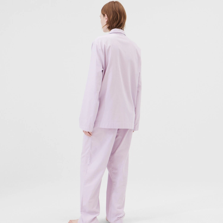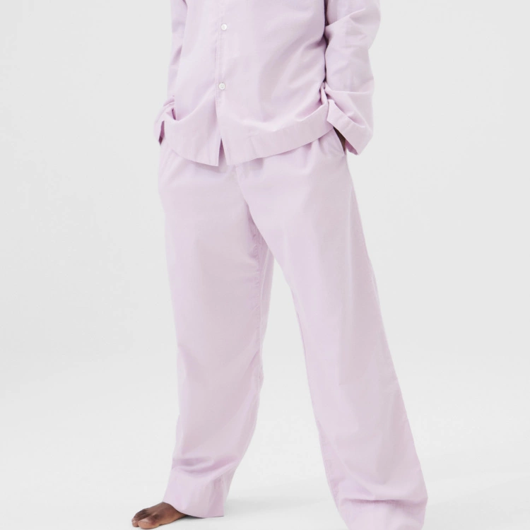 Flannel Pyjamas Pants Lilac är ett par mjuka pyjamasbyxor i flanell från det danska varumärket Tekla. Pyjamasbyxorna är producerade i Portugal och är tillverkad helt i ekologisk bomull. De lätt tvättade pastell lila byxorna är en unisex-modell med en avslappnad passform. Plagget är designat med dragsko i midjan och har en gylf med knappar.