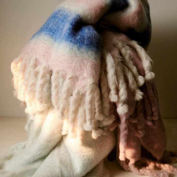 Le Corbusier Blanket – Outremer Gris/Blue Outremer/Rose Vif är designad av Tekla. Det är en mjuk filt tillverkad i mohair, ull och polyamid. Pläden kommer i färgen Outremer Gris/Blue Outremer/Rose Vif men finns även i flera andra stilrena färger att köpa hos oss på Nordiska Galleriet.