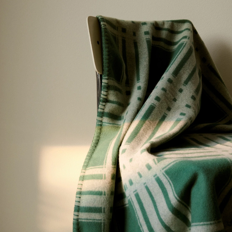 Le Corbusier Blanket – Vert Anglais/Blanc är formgiven av varumärket Tekla. Det är en mjuk, voluminös filt tillverkad i ull och kashmir. Pläden kommer i färgen Vert Anglais/Blanc men finns även i flera andra stilrena utföranden.