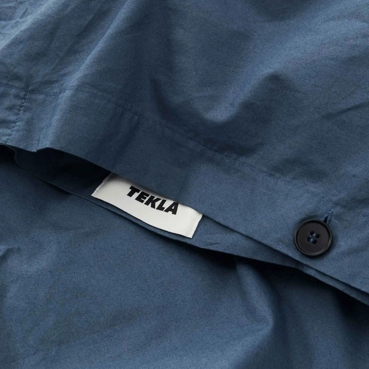 Percale Cotton Duvet Cover i färgen Midnight Blue är ett lakan från varumärket Tekla. Påslakanet är i 100% ekologisk bomull med Oeko-Tex Standard 100 och är STeP certifierad. Den stentvättade bomullen skapar ett krisp i sängen samtidigt som den känns lätt och skön att sova i. Percale Cotton Duvet Cover har hörnslitsar som gör det enkelt att sätta på och ta av. Bädda tillsammans med örngottet Percale Pillow Case i samma färg för en stilren framtoning.