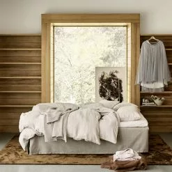 Percale Duvet Cover Pink Mattress Stripes är en del av Teklas Organic Cotton Percale serie som består av örngott, påslakan och bäddlakan i ett flertal olika färger.