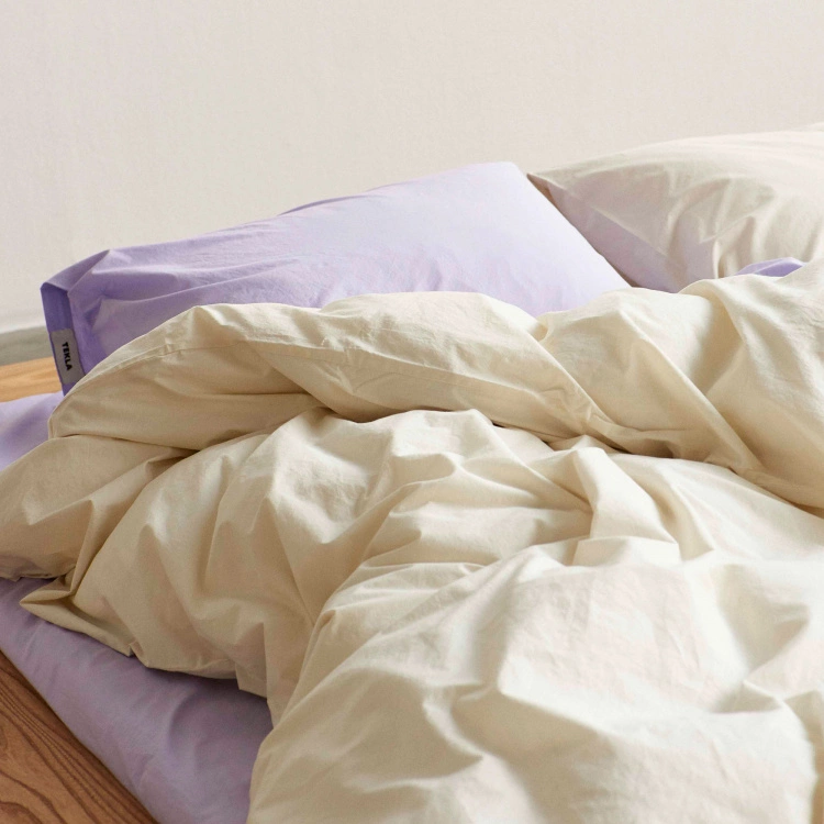 Kollektionen Percale från danska Tekla har en lakanskvalité som vävs av den allra bästa, mest finkammade bomullen. Detta medför att Percale Pillow Case Lavender inte samlar på sig lika mycket hår och damm. Percale vävs i 100% percalebomull med långa fibrer och har en trådtäthet på 300 TC. Percale Pillow Case Lavender har en enkel design och kommer i en lila nyans som påminner om lavenderblomman och är förtvättat och stentvättat vilket ger en mjuk känsla samt matt finish. Örngottet har ett mått på 50 x 60 cm.