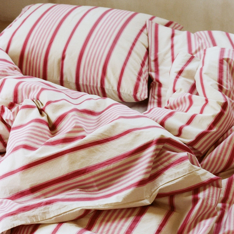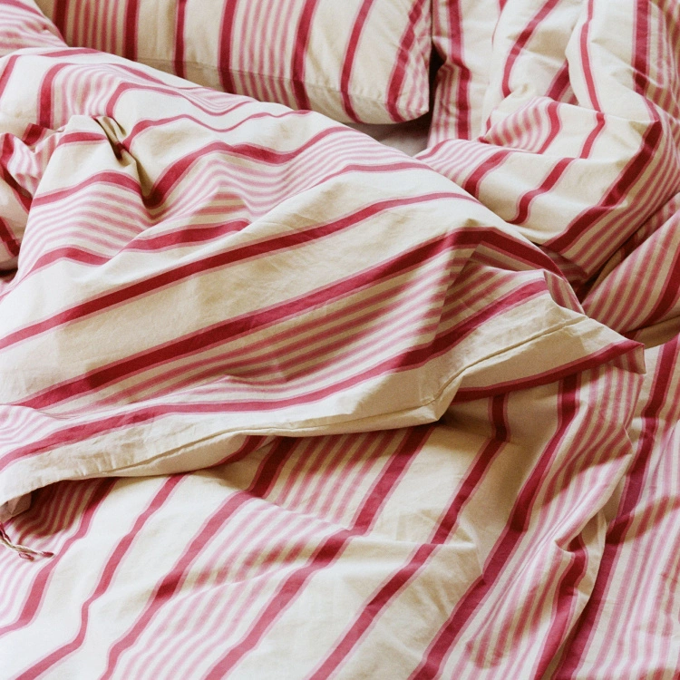 Percale Pillow Case Pink Mattress Stripes är en del av Teklas Organic Cotton Percale serie som består av örngott, påslakan och bäddlakan i ett flertal olika färger.