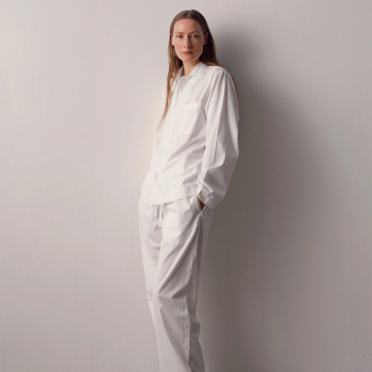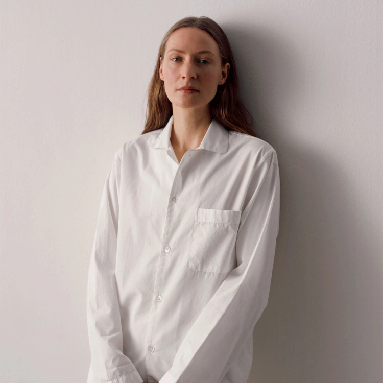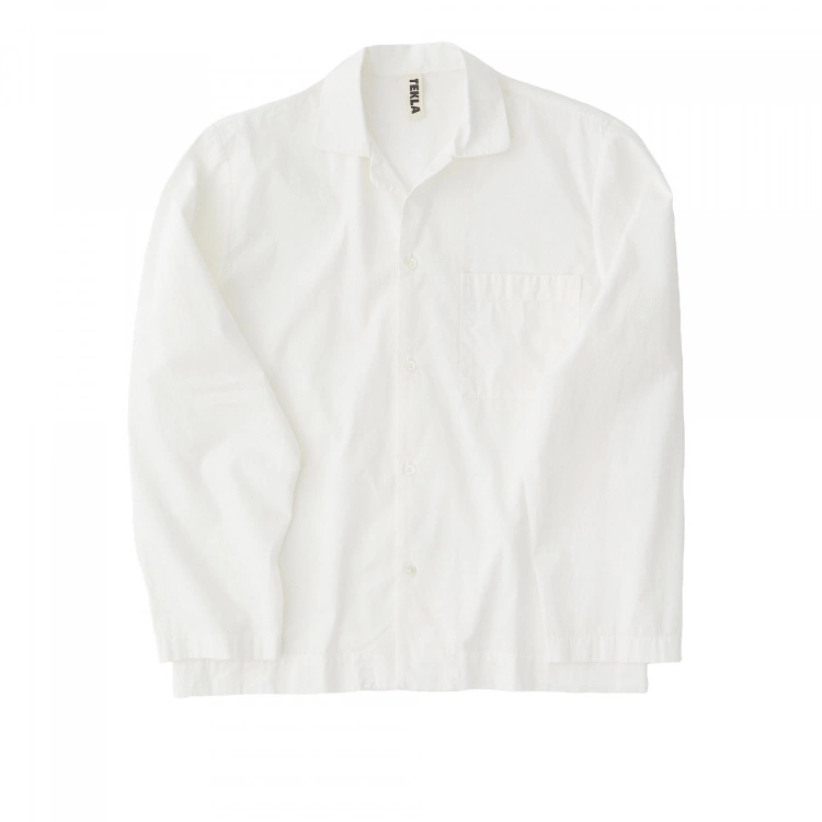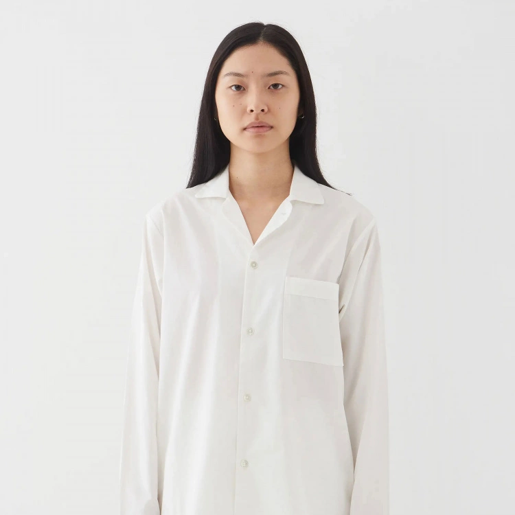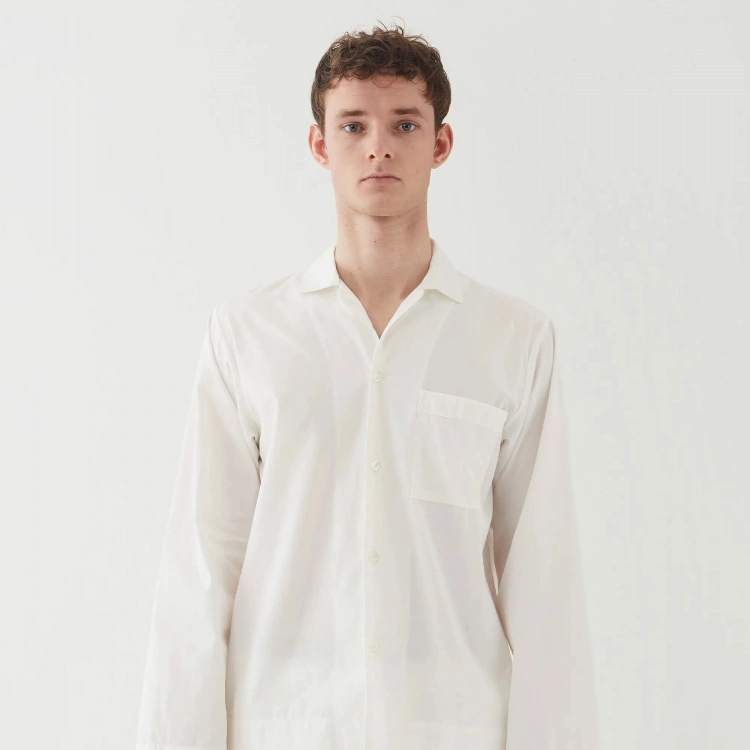Pyjamasskjortan Poplin Pyjamas Shirt Alabaster White är ett stilrent sovplagg från det danska varumärket Tekla. Modellen är unisex och passar perfekt för både män och kvinnor. Skjortan är lätt stentvättad i 100% ekologisk bomull och har därför en mjuk, lätt och krisig känsla. Pyjamasskjortan passar lika bra att strosa runt i hemma, såväl som att sova i.