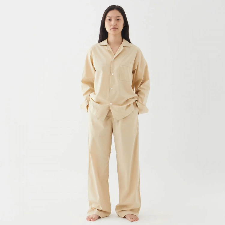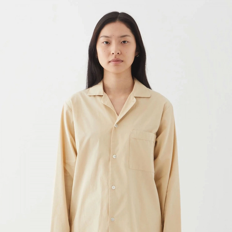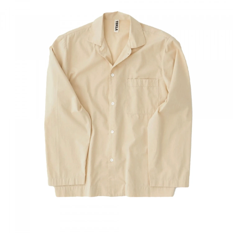 Pyjamasskjortan Poplin Pyjamas Shirt Khaki kommer från danska textilvarumärket Tekla. Skjortan är ett elegant sovplagg av poplinkvalitet som ger en krispig och mjuk känsla som även förstärkts genom att stentvättats. Materialet är 100 % ekologisk bomull som är Oeko-Tex certifierad. Poplin Pyjamas Shirt Khaki är i unisex-modell som passar både män och kvinnor med en passform som är något oversize och avslappnad i en fin grön nyans. Skjortan har en klassisk skjortknäppning och kan kombineras med pyjamasshortsen Poplin Pyjamas Shorts Khaki i samma design.