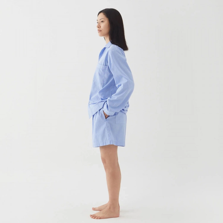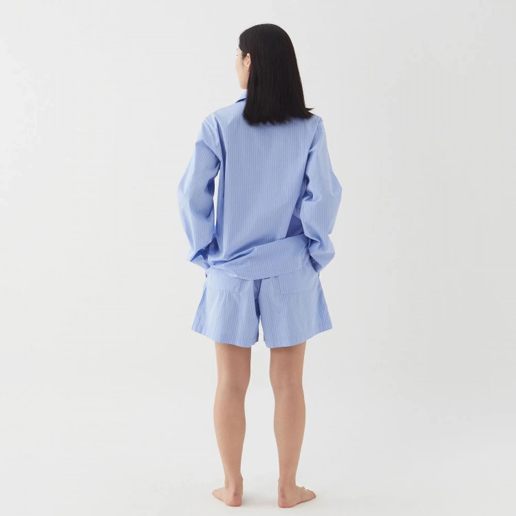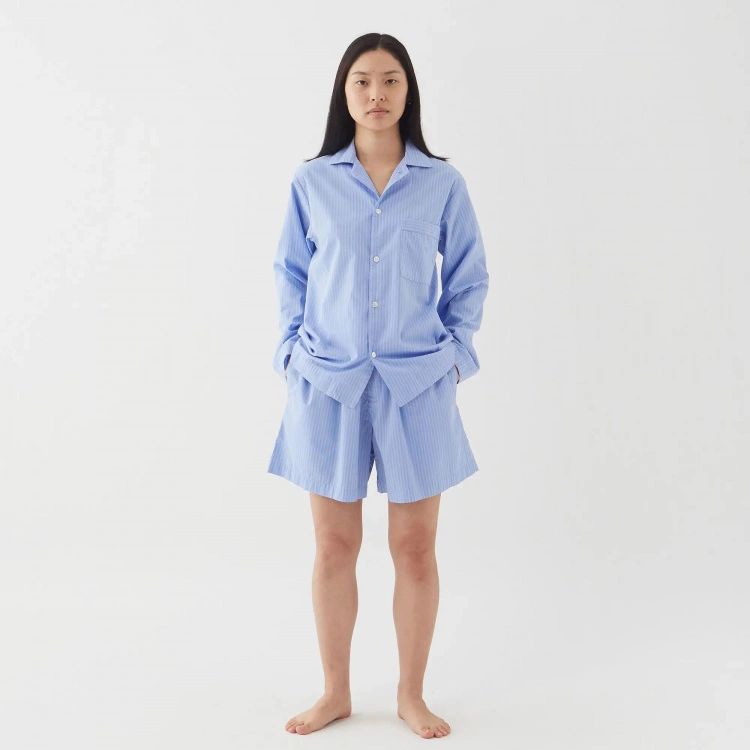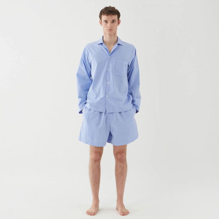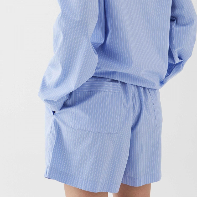 Poplin Pyjamas Shorts Blue Pin Stripes är ett stilrent sovplagg från det danska varumärket Tekla. Modellen är unisex och passar perfekt för både män och kvinnor. Shortsen är lätt stentvättad i 100% ekologisk bomull och har därför en mjuk, lätt och krisig känsla. Pyjamasshortsen passar lika bra att strosa runt i hemma, såväl som att sova i.
