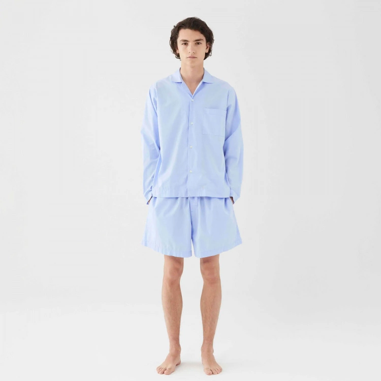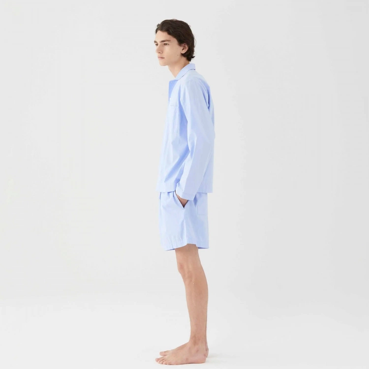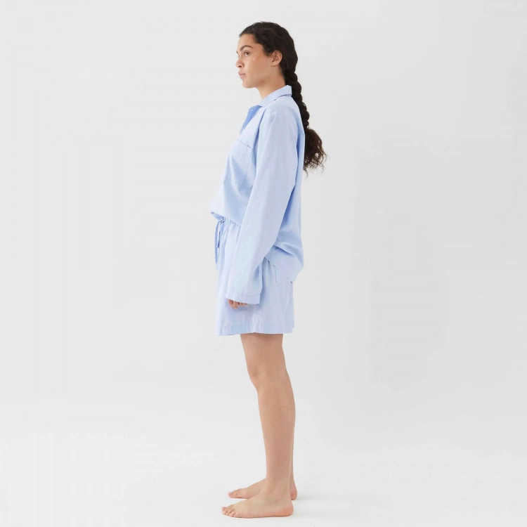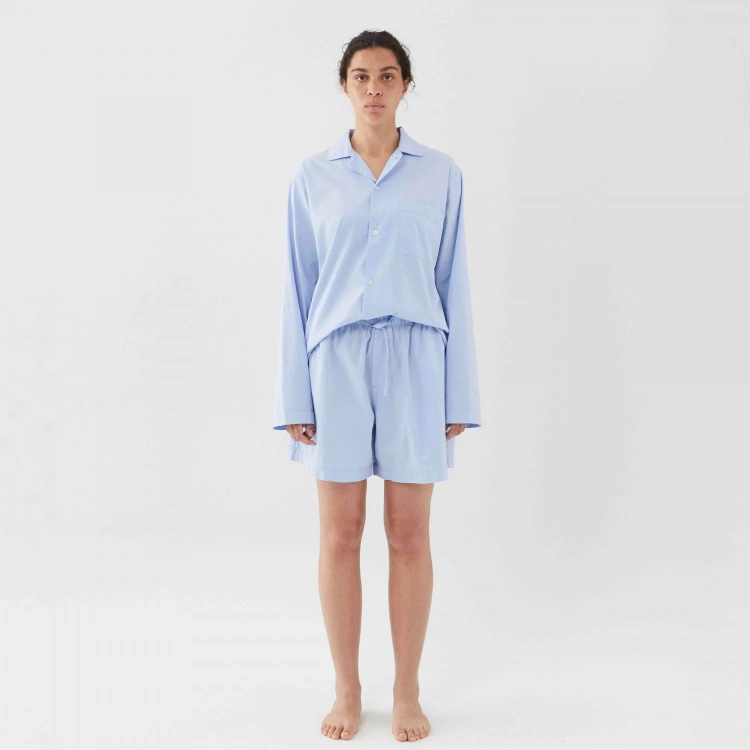 Poplin Pyjamas Shorts Shirt Blue är ett stilrent sovplagg från det danska varumärket Tekla. Modellen är unisex och passar perfekt för både män och kvinnor. Shortsen är lätt stentvättad i 100% ekologisk bomull och har därför en mjuk, lätt och krisig känsla. Pyjamasshortsen passar lika bra att strosa runt i hemma, såväl som att sova i.