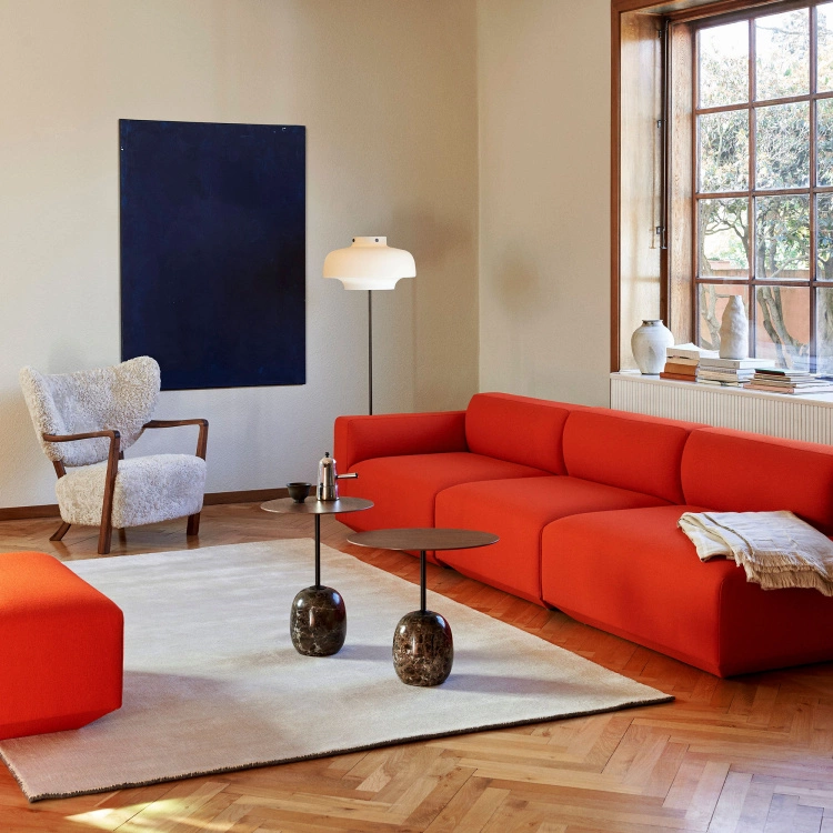 The Moor Rug AP5 är en rektangulär matta, designad av formgivarna Tanja Vibe och Petra Olsson Gendt bakom All The Way to Paris för danska &tradition. Mattan är handtuftad, vilket ger en mjuk och behaglig karaktär – både i det visuella och under fötterna. Detta beror på att man till största del, närmare 85%, använt sig av nyzeeländsk ull som man sedan diskret vävt samman med viskos.
